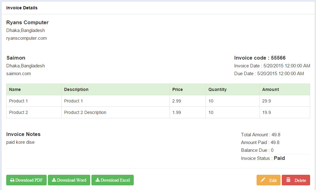 En el sistema de facturación puede configurar fácilmente sus clientes, productos, empresa y factura. Puede acceder al sistema de facturación desde dispositivo movil con excelente experiencia de usuario!